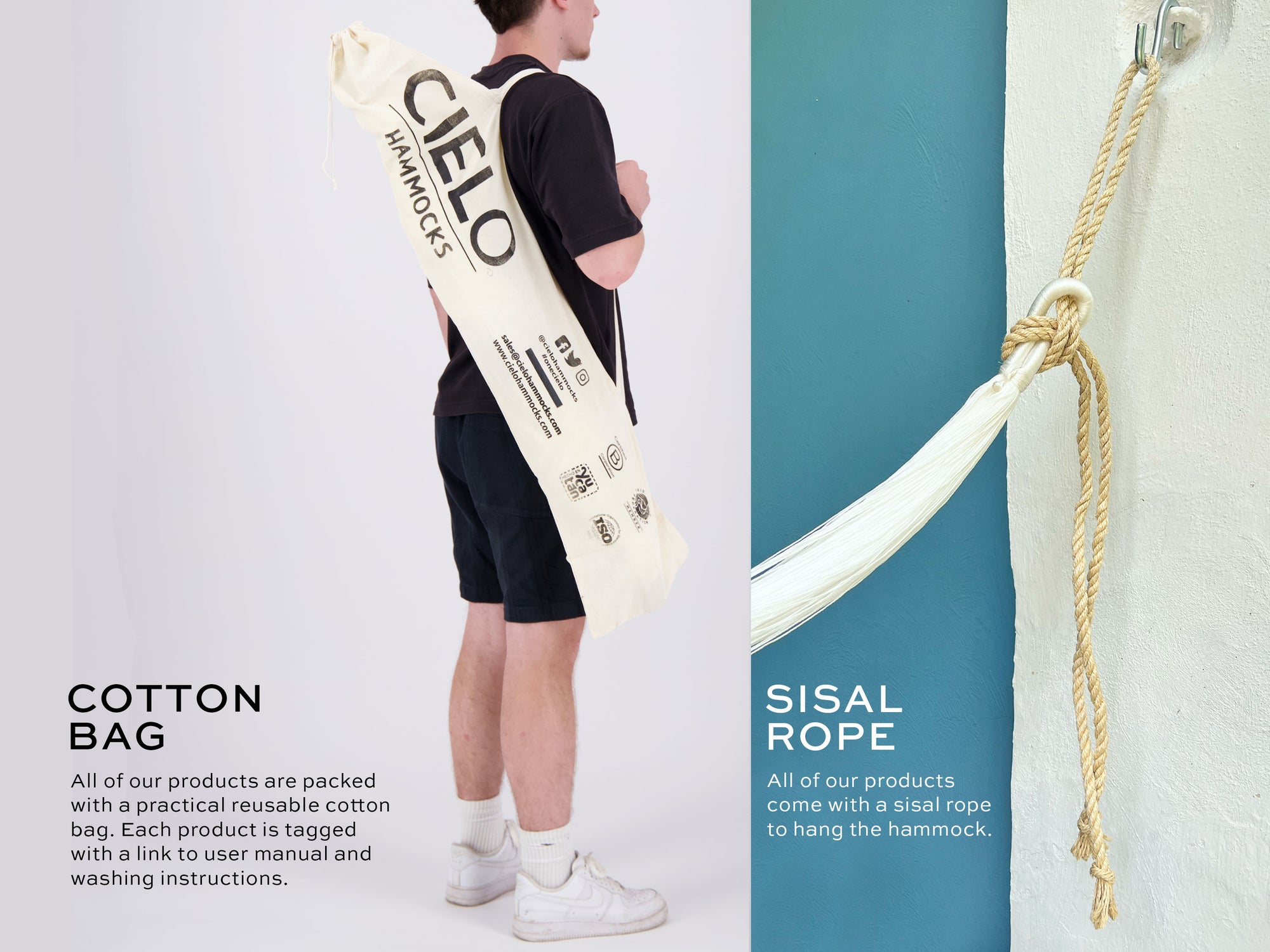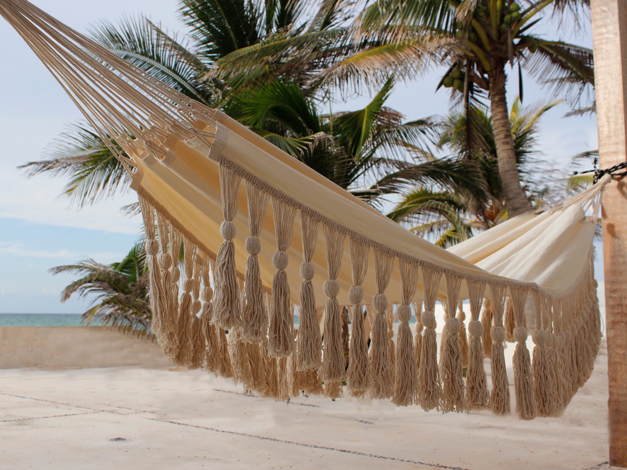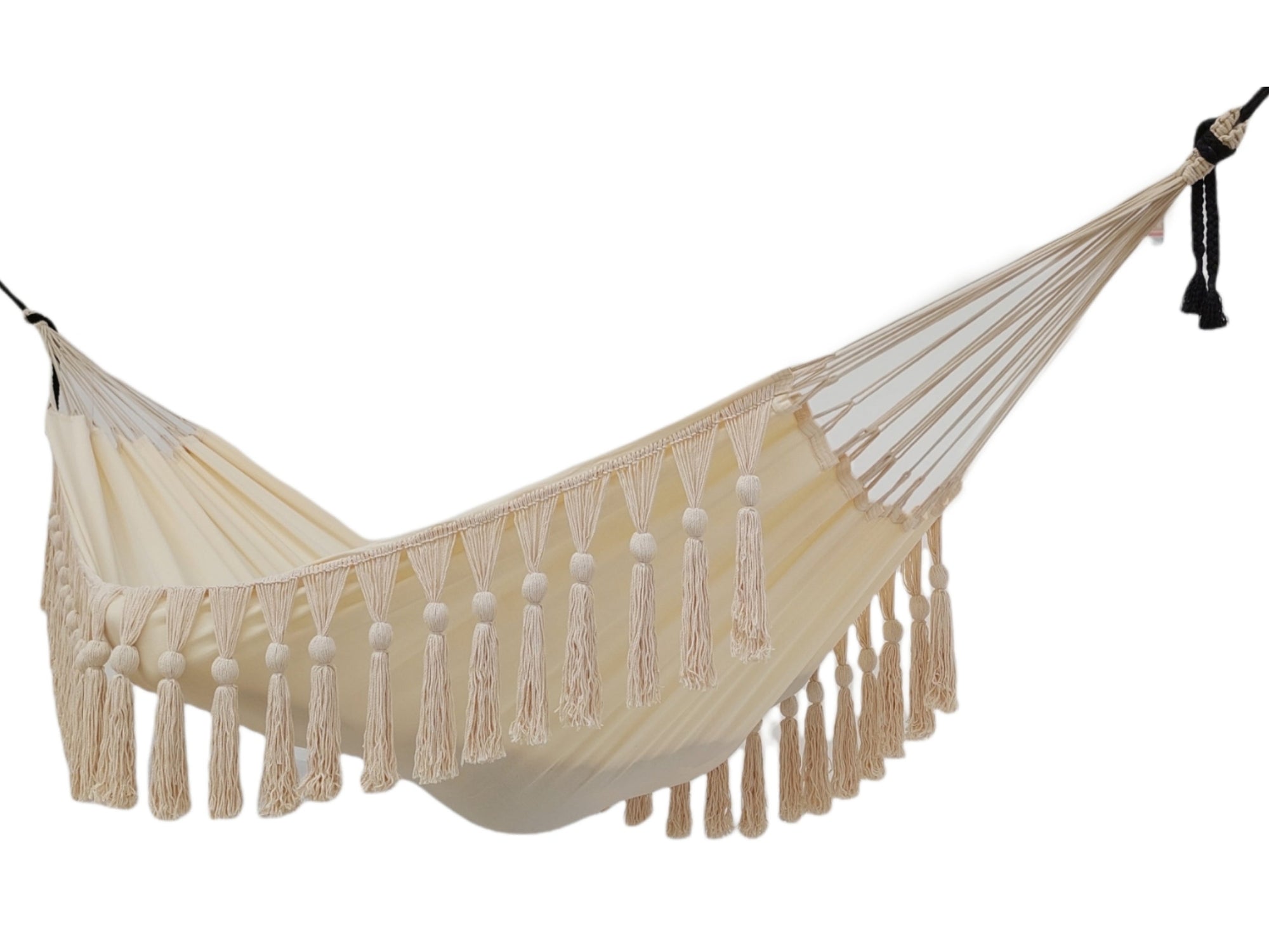 Canvas Hammocks are perhaps the most common of hammocks. They are manufactured across Latin America, Colombia, Brazil, India and China to name a few. We are the only manufacturer of this kind in Mexico. We developed a thick, top line quality cotton canvas line for our hammocks. We also developed a line that will resist the outdoors. Available in hammocks, chairs and American style hammocks. Exclusive to Cielo Hammocks.